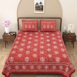 100% Pure Cotton Traditional Printed Bedsheet for Double Bed King Size Bedsheet with 2 Pillow Covers